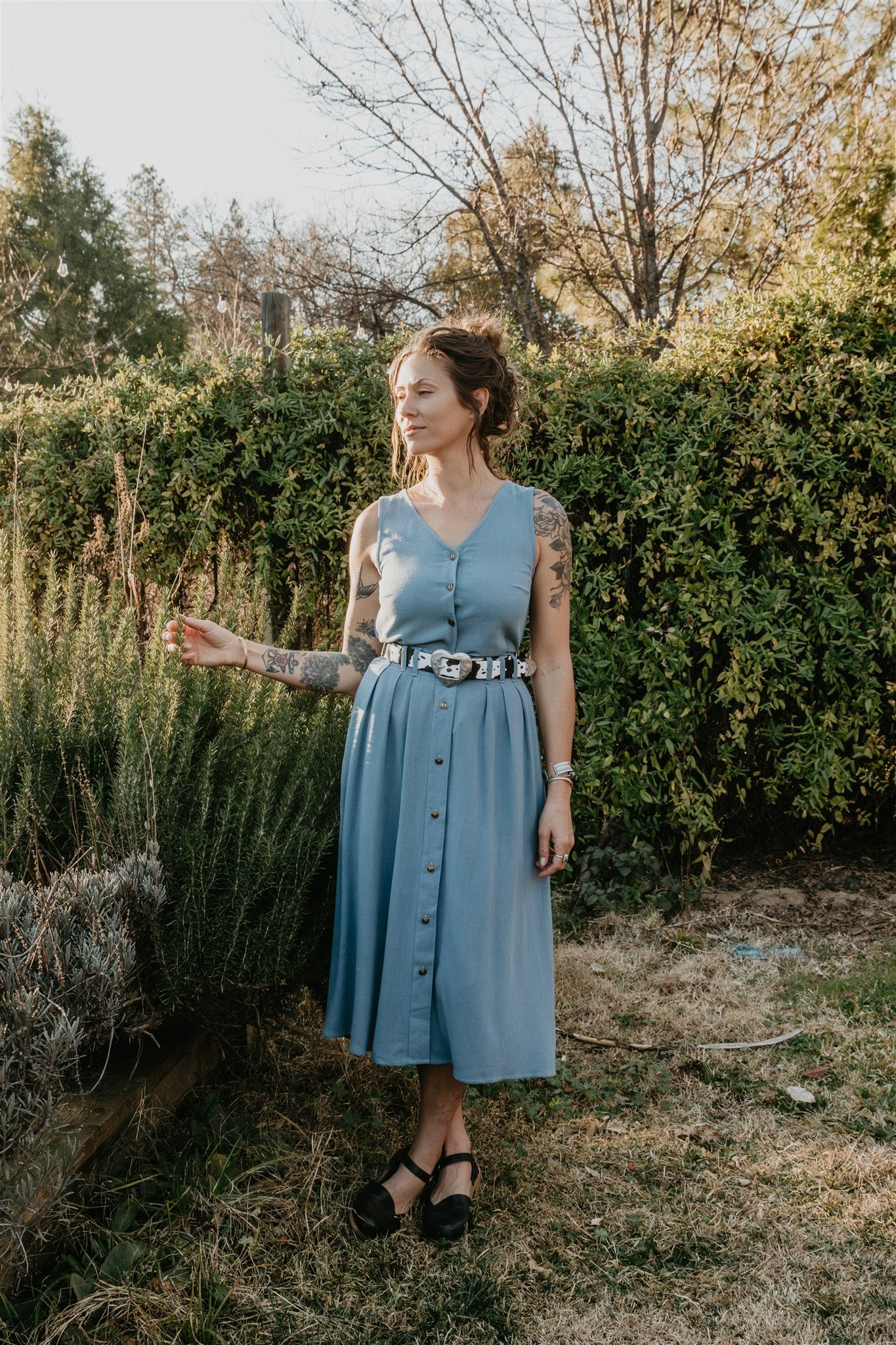 Jessica B is 5'8" with a 36" bust, 28" high waist, 39" hips and is wearing a SMALL