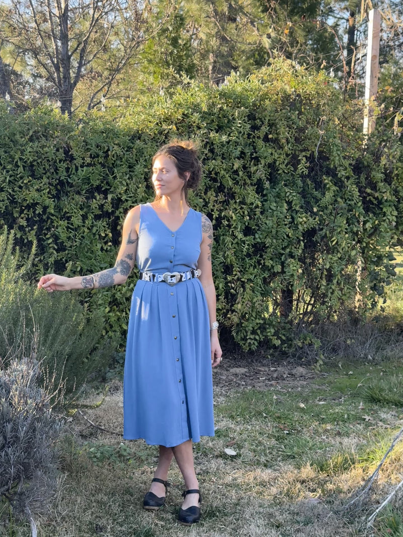 Trices Skirt in Textured Blue Irish Linen