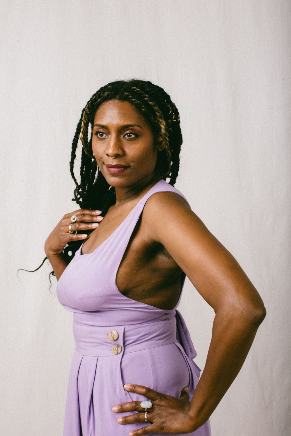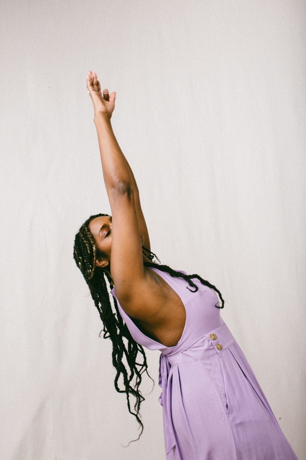 Bamboo button-up closure at the high waist. Long strap that ties around the low back. Added sexy touch with a little (not too much) side-boob. Wear with nothing at all or with a tank or shirt underneath, works well with a long sleeve in the winter.