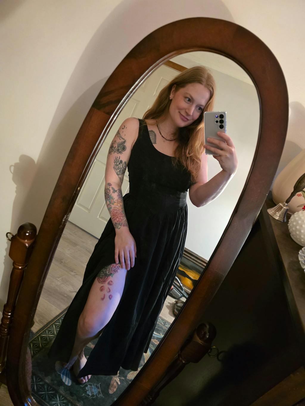 - Twirlable skirt with a long 23" slit that shows just the right amount of leg